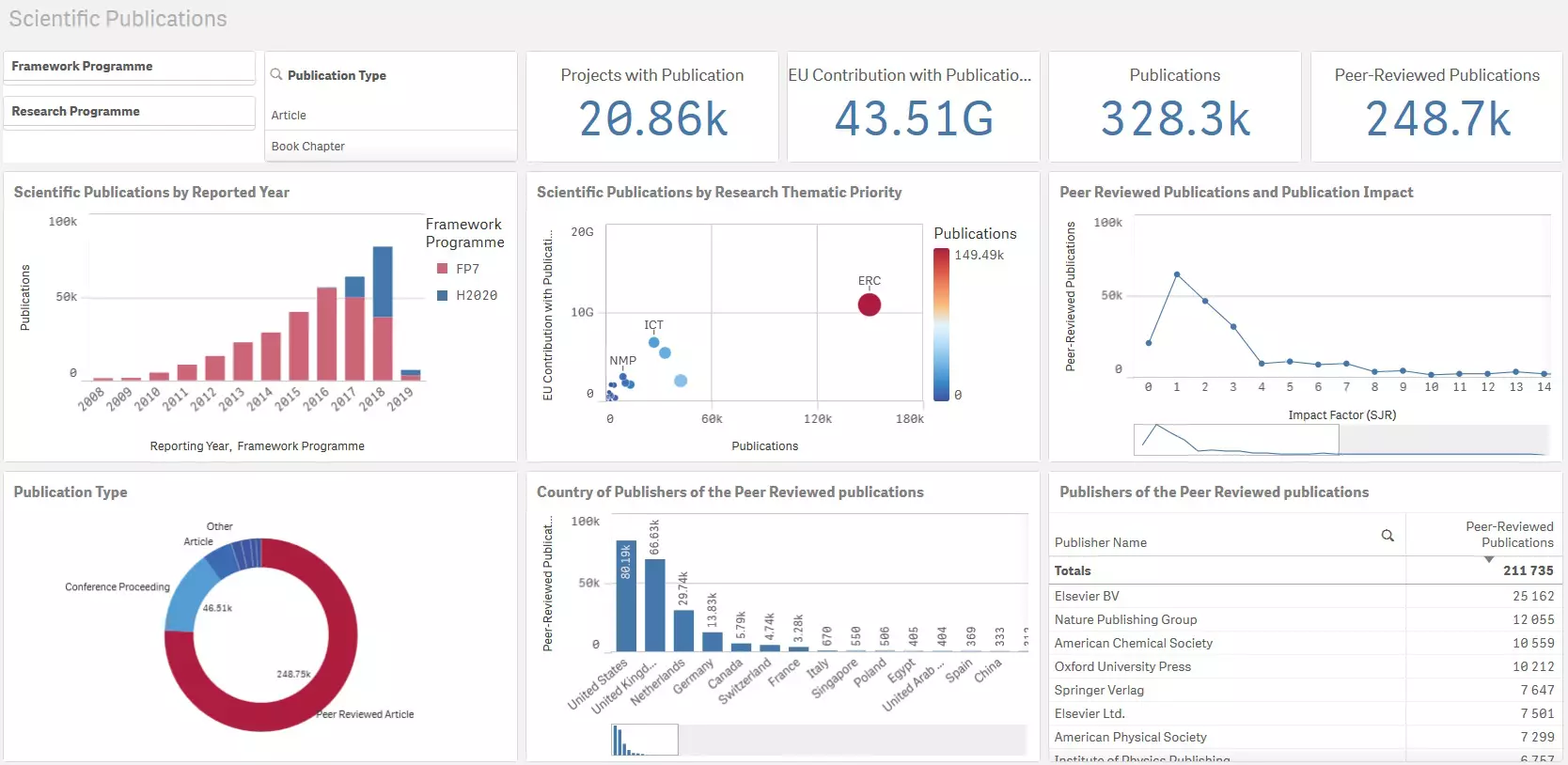 Z aplikace je například patrné, že jen z podpory v programu Horizont 2020 doposud vzniklo přes 58 tisíc publikačních výsledků v rámci více než šesti tisíc podpořených projektů. Nejčastěji se jednalo o recenzované publikace (32 tisíc) a konferenční příspěvky (19 tisíc). Od roku 2016 bylo také podáno zatím 1290 přihlášek k ochraně duševního vlastnictví vzniklého z těchto projektů.